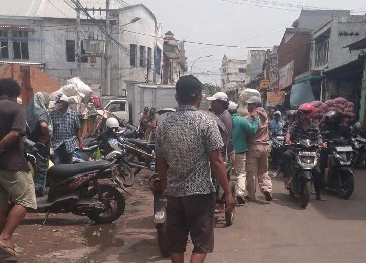 Berketepatan awak media melintas, jalanan yang memang hampir tiap hari macet di karenakan aktifitas pasar.